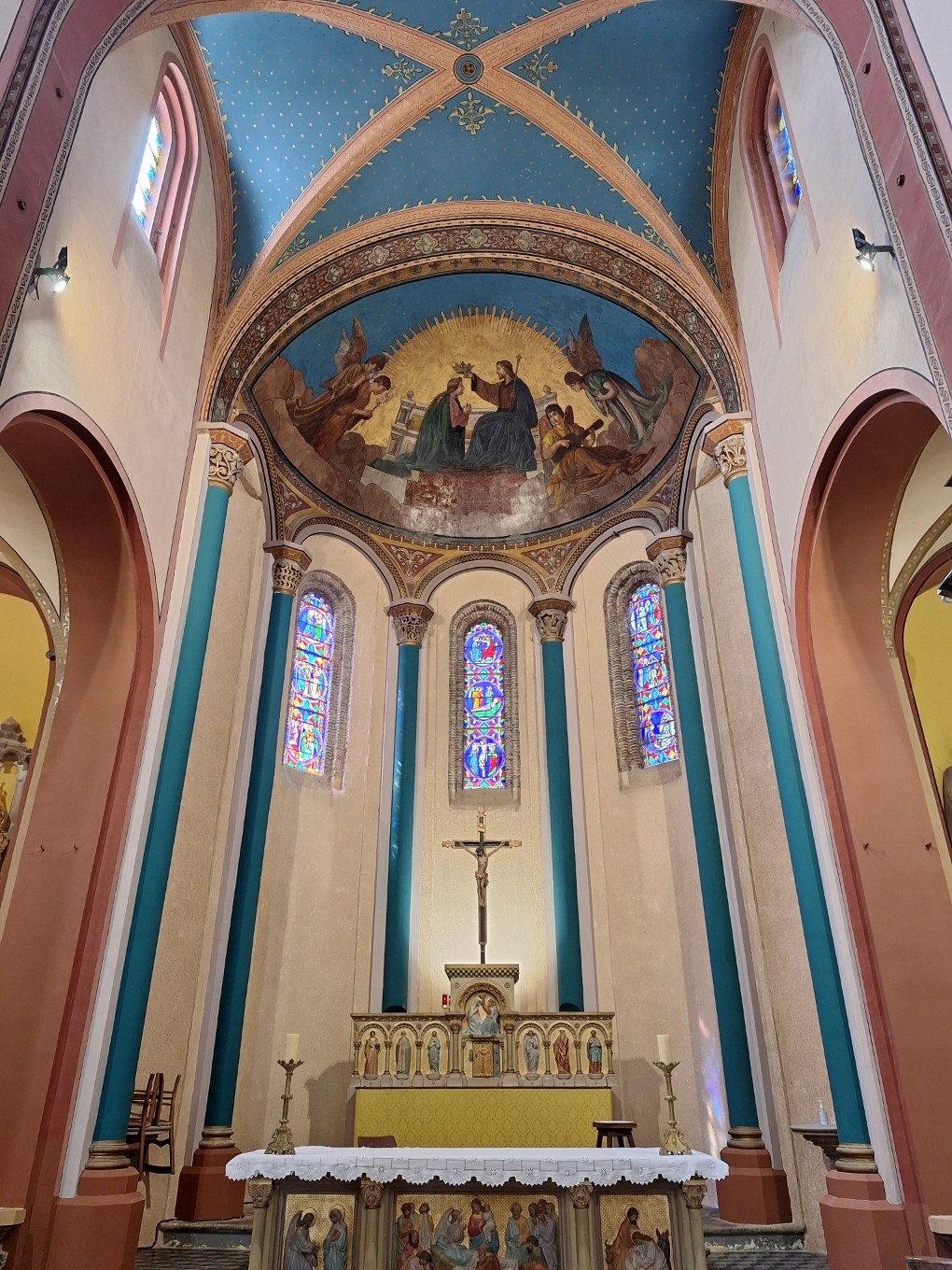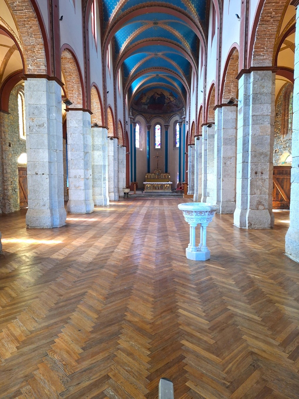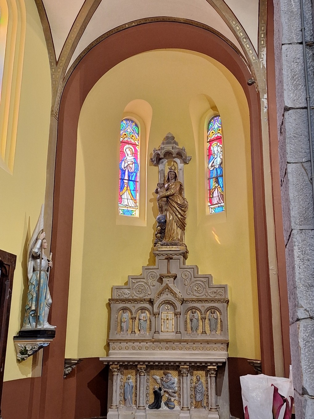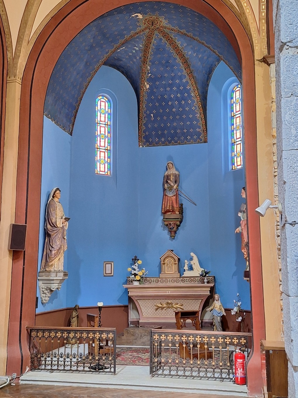 Au milieu du XIXème siècle, l'ancienne église, trop petite et menaçant ruine, est abandonnée et remplacée, dans la partie basse de Villeneuve, par cette église néo-romane de trois nefs.